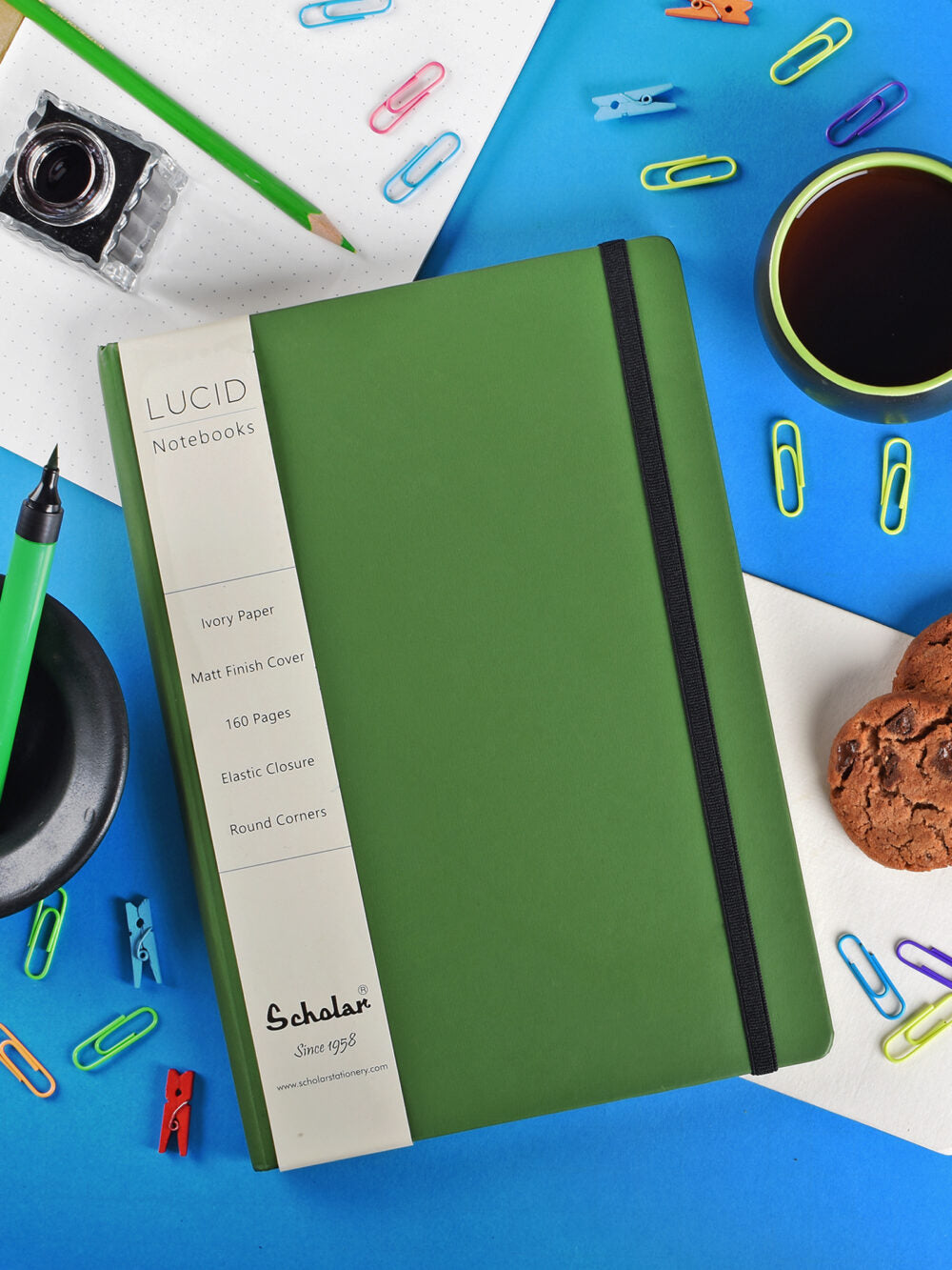 Lucid is your everyday journaling notebook that comes with ruled pages & an elastic band. Available in 8 sober colours to match your style. Simple & affordable notebookThe Scholar Lucid A5 ruled notebook is your absolutely must have daily essential. It’s smooth natural shade paper makes writing an absolute joy. FSC Certified matt covers are easy on the eye & suit every style. Whether it’s journaling, meetings or documenting your travels, this Scholar Lucid A5 ruled notebook will serve you right for every use. Comes in 8 fantastic colours: Red, Orange, Green, Blue, Navy Blue, Violet, Grey & Black.